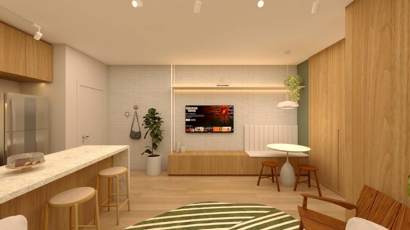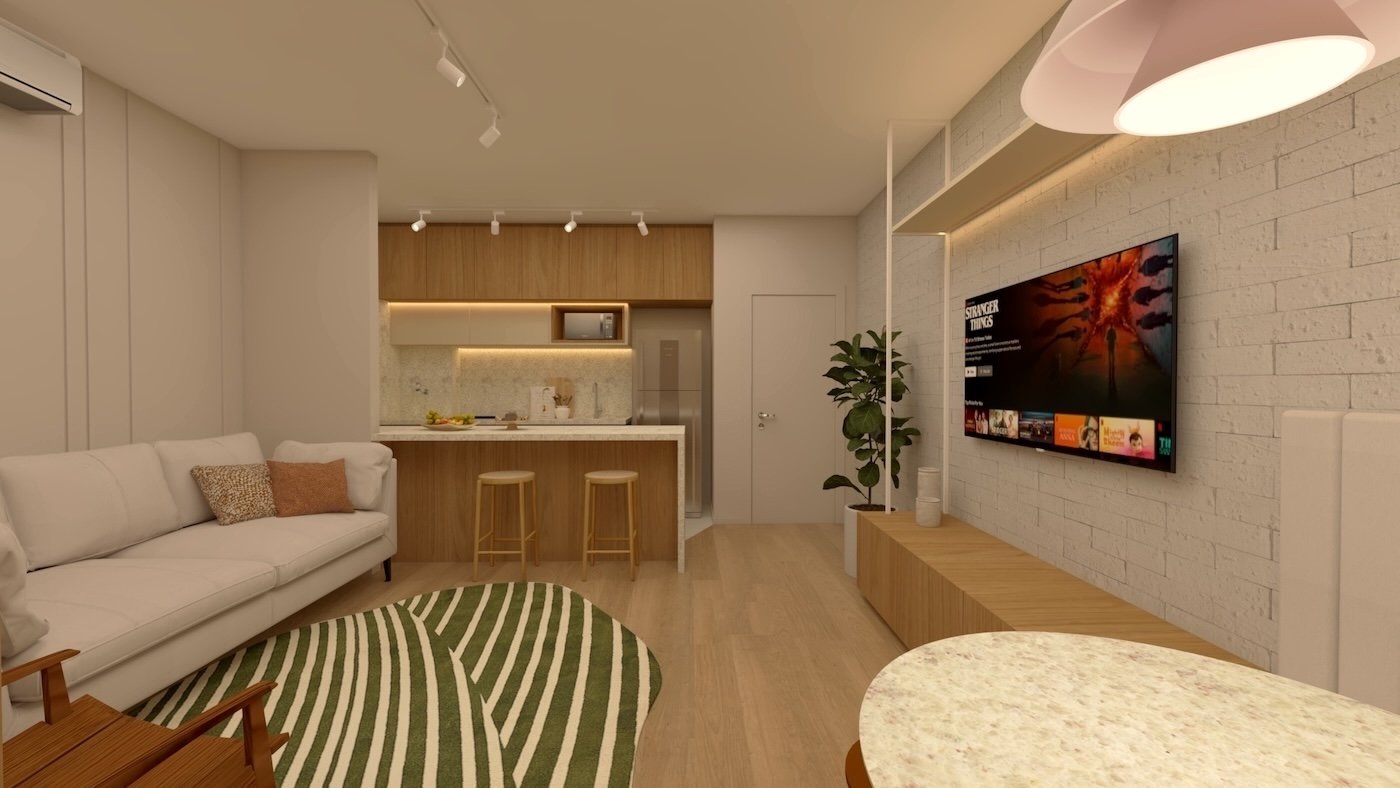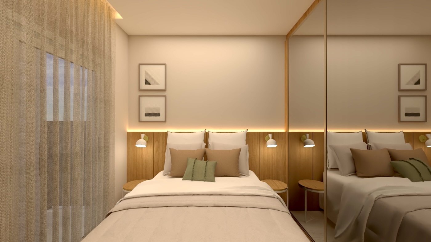 As imagens e ilustrações apresentadas são meramente ilustrativas e representam sugestão de ambientação. O imóvel será entregue conforme o Memorial Descritivo de Acabamentos, que prevalece sobre quaisquer representações gráficas ou informações divulgadas.