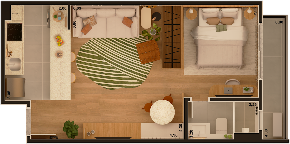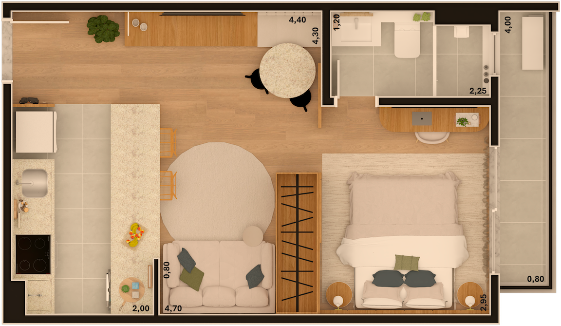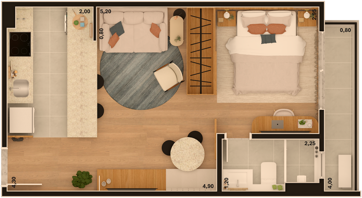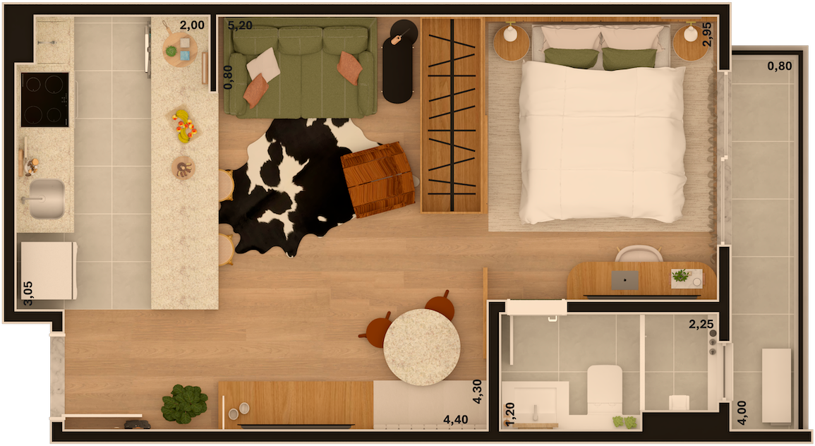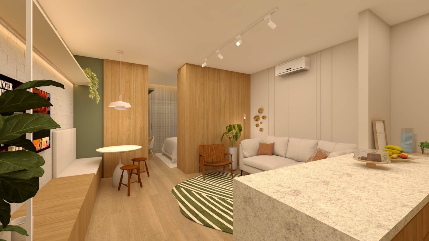 As imagens e ilustrações apresentadas são meramente ilustrativas e representam sugestão de ambientação. O imóvel será entregue conforme o Memorial Descritivo de Acabamentos, que prevalece sobre quaisquer representações gráficas ou informações divulgadas.